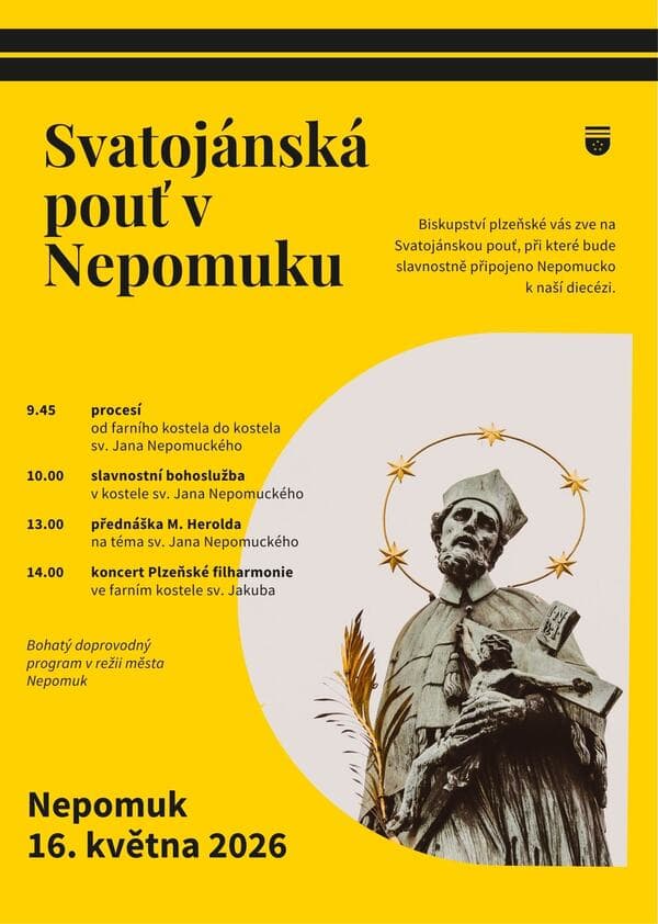 Biskupství plzeňské srdečně zve 16. května 2026 na Svatojánskou pouť v Nepomuku, která bude letos spojena s významnou událostí pro místní církev, a to slavnostním připojením Nepomucka k naší diecézi.