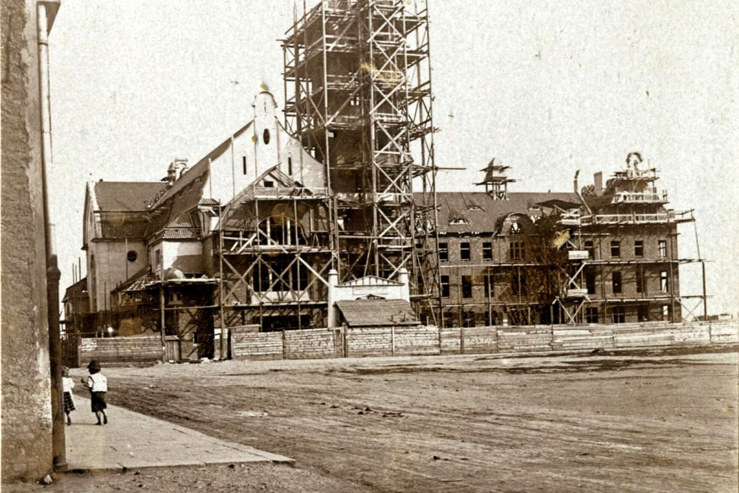 Architektonický návrh vypracoval Antonín Möller z Varnsdorfu ve stylu německé moderny a doznívající secese. Provádějícím stavitelem byl Eduard Sochor. Stavbu oficiálně zahájilo posvěcení základního kamene 15. 8. 1912. Během zimy se práce zastavily. Už 15. 5. 1913 byl stavěn krov kláštera a 25. 7. 1913 vztyčen kříž na věži kostela.