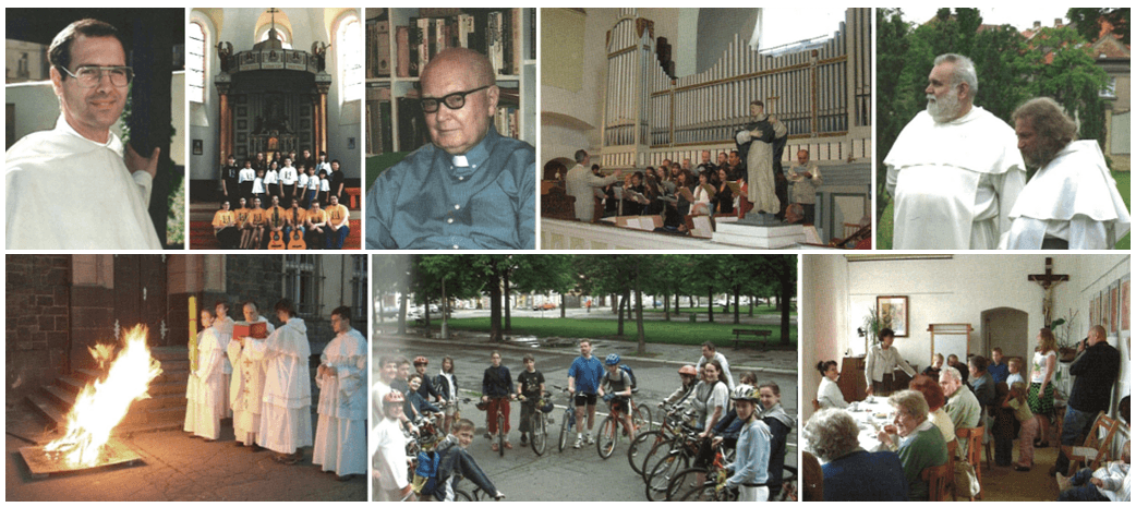 V červnu 1990 bylo dominikánům dominikánům uvolněno 2. patro klášterní budovy, v ostatních prostorách zatím ještě sídlilo plicní oddělení. Příchozí bratry vítali farníci, kteří ještě pamatovali dobu před jejich nuceným odchodem. Kaplanem faráře Antonína Hýži se stal P. Jiljí Příkaský OP, který se podílel na obnově Třetího řádu sv. Dominika, zahájil vyučování základů křesťanství pro děti, mladé lidi i dospělé, a založil společenství schóly s hudebním, herním a divadelním programem.